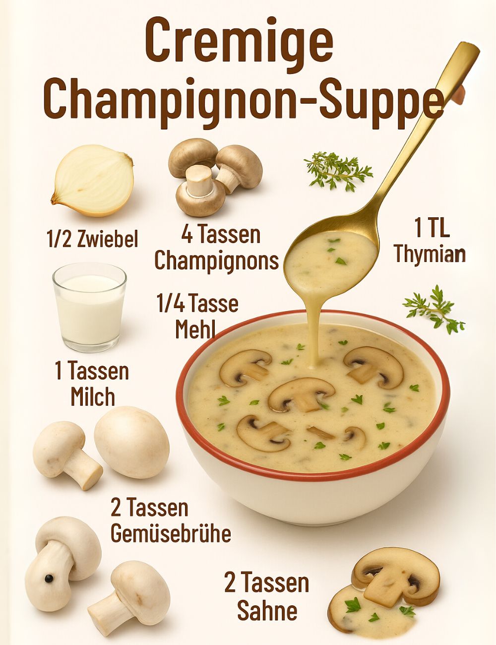 4 Tassen Champignons (ca. 300 g), in Scheiben geschnitten