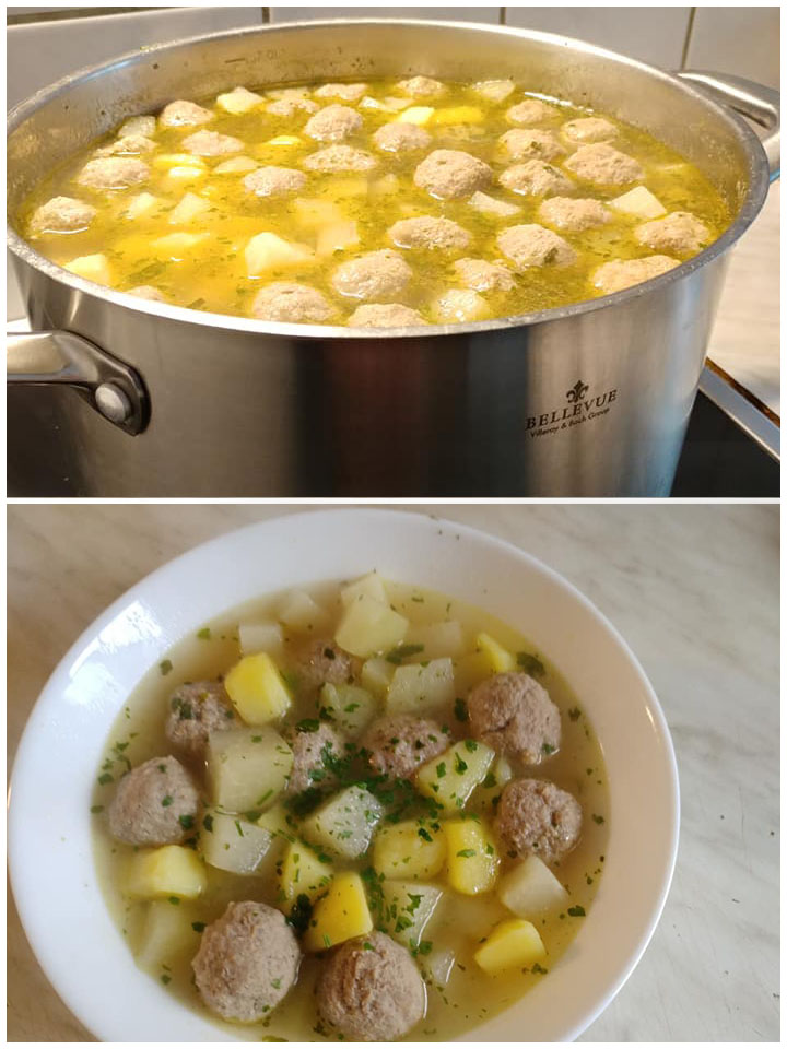 Es ist wirklich ganz simpel. Ich koche in Brühe erst den Kohlrabi vor, so etwa 15min. Dann gebe ich die Kartoffeln dazu. Das ganze kocht noch einmal so 10 min. Zum Schluß die Hackbällchen. Das Gehackte ist ganz normal angemacht mit Ei, Zwiebel, Paniermehl, Senf, Salz und Pfeffer und vorgerollt, das dauert am längsten. Wenn die Klöpschen oben schwimmen , ist es auch schon fertig.