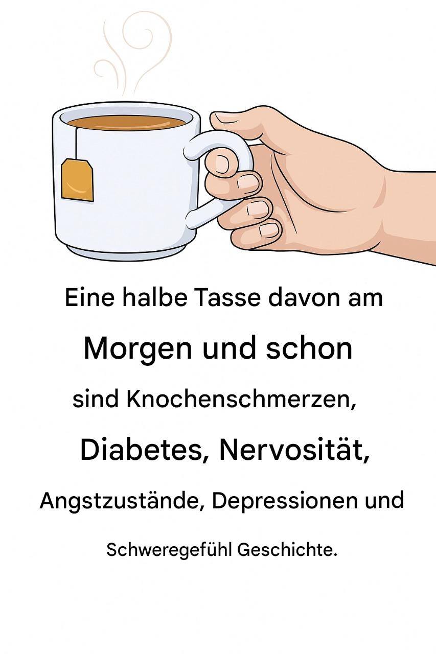 Da das Bild eine Tasse Tee zeigt, findest du hier einige gesunde Teerezepte, die oft zur Unterstützung von Knochen, Nerven, Verdauung und allgemeinem Wohlbefinden verwendet werden:
