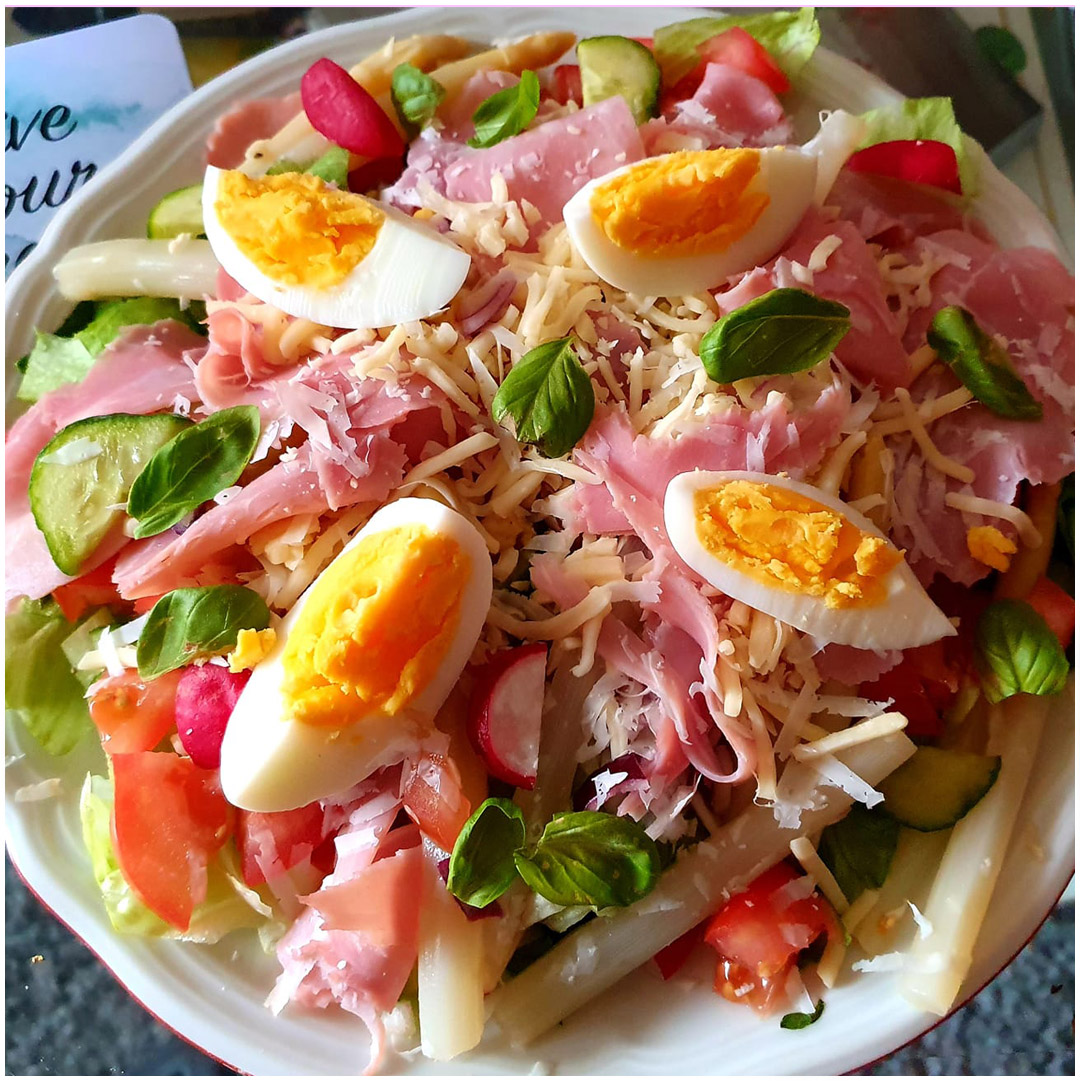 Herzhaft-bunter Schinken-Ei-Salat