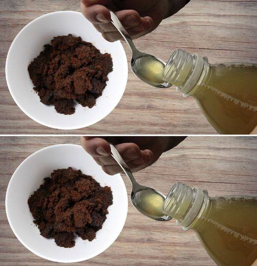 Apfelessig und Kaffeesatz sind zwei natürliche Inhaltsstoffe, die in einer Vielzahl natürlicher Zubereitungen verwendet werden können, sowohl für die Haut als auch für die Haushaltsreinigung.