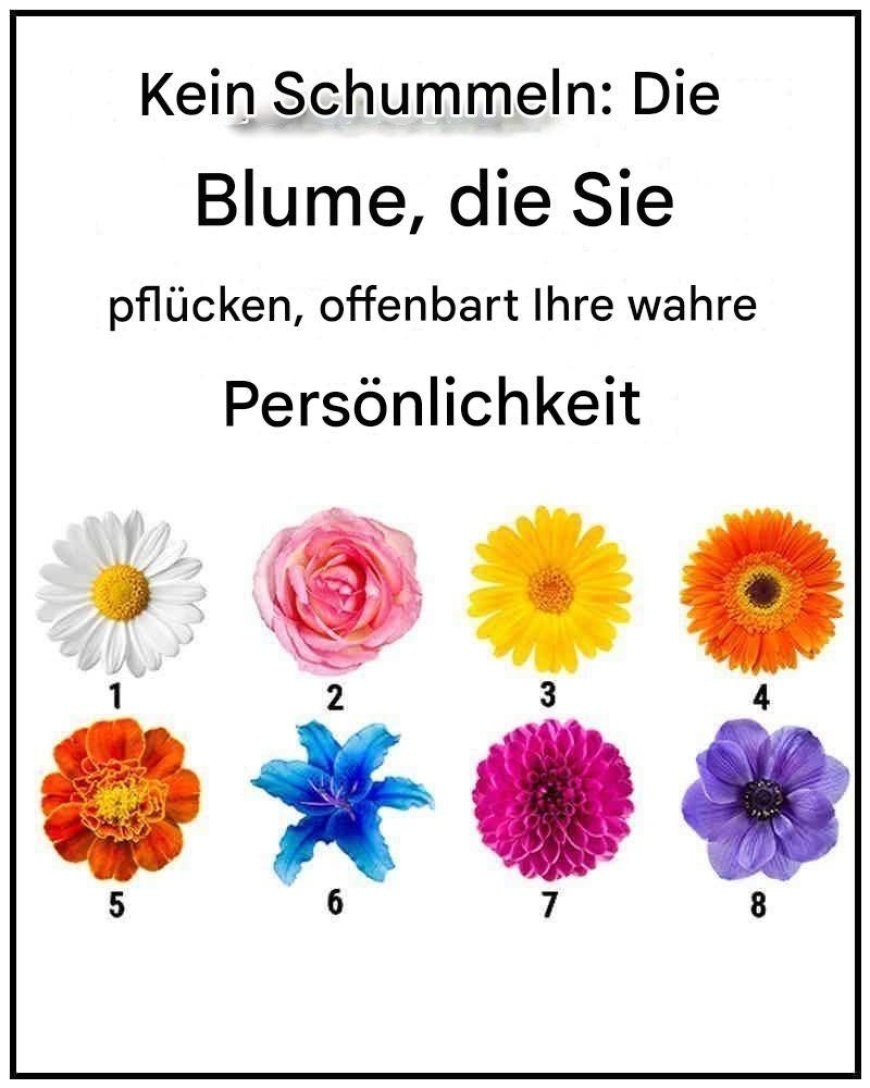 Manchmal genügt eine einfache Entscheidung, um tiefer in unser Inneres zu blicken – etwa die Wahl einer Blume. Was auf den ersten Blick willkürlich erscheinen mag, kann erstaunlich viel über die Persönlichkeit und verborgene Charakterzüge verraten. Jede Blume steht symbolisch für eine besondere Eigenschaft, die unsere Sicht auf uns selbst und andere verändern kann. Welche Blume würden Sie pflücken? Ihre Wahl spricht Bände.