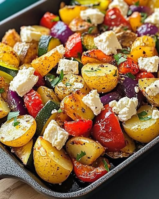 Knusprige Feta-Kartoffeln mit Ofengemüse
