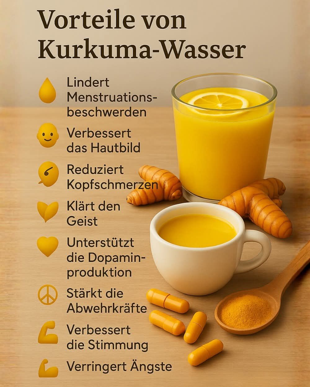 * ½ Teelöffel Kurkumapulver oder ein kleines Stück frische Kurkuma, fein gerieben