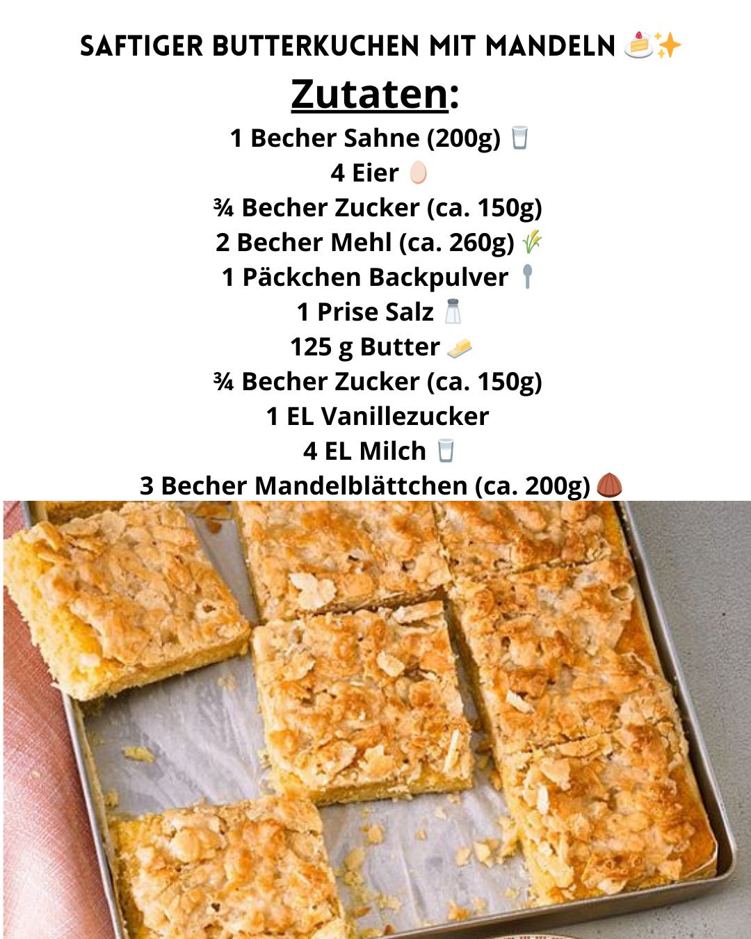Zutaten für den saftigen Butterkuchen mit Mandeln ![]()
