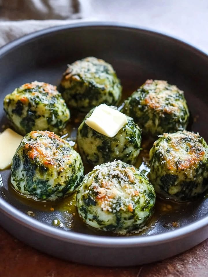 Südtiroler Spinatknödel mit Butter und Parmesan