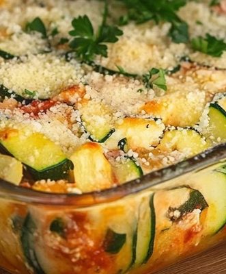 Zucchini-Genuss: Herzhaftes Ofengericht mit Hüttenkäse und Knoblauch-Joghurt-Gurkensauce